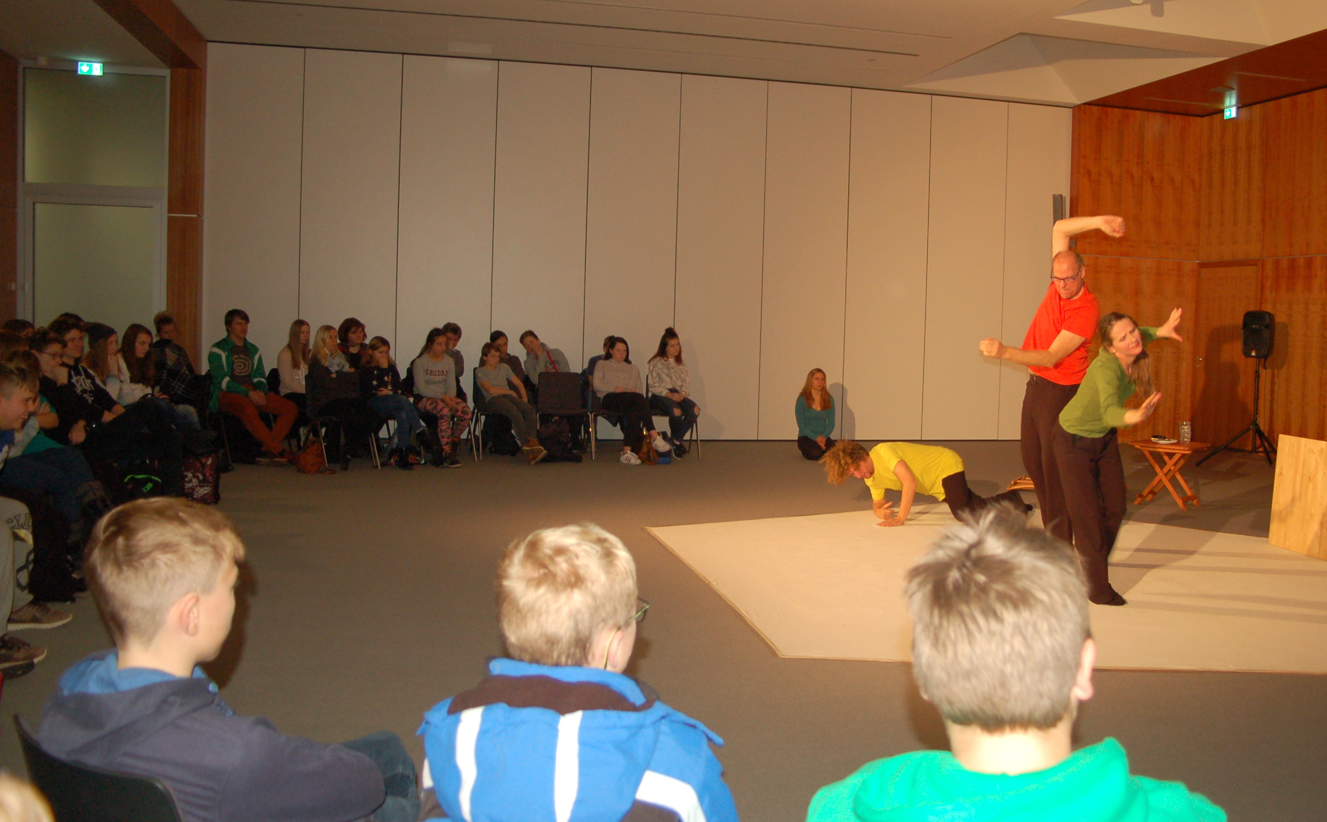 An das schwierige Thema „Häusliche Gewalt“ hat sich das Theater EUKITEA am 26. November 2018 im Rahmen der Sächsischen Frauenwoche 2018 gewagt. Das Stück „Du bist unschlagbar“ entstand in Kooperation mit TERRE DES FEMMES e.V. und thematisiert Gewalt in Familie und (häuslichen) Beziehungen. Im Landratsamt Plauen wurden viele Jugendliche sensibilisiert, genauer hinzusehen, wie Gewalt entstehen kann. Dabei wurden verschiedene Arten der Gewalt betrachtet und als Musiktheaterstück umgesetzt. Anschließend gab es Raum für Gespräche.