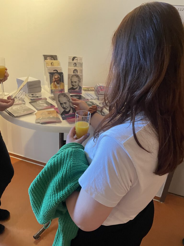 Im Nachgang lud Konstanze Morgenroth zu einer kleinen Lesung ein. Aus dem Buch „Beklaute Frauen – Denkerinnen, Forscherinnen, Pionierinnen: Die unsichtbaren Heldinnen der Geschichte“ von Leonie Schöler wurden kurze Auszüge vorgetragen und anschließend in kleiner Runde diskutiert. Das Buch thematisiert Frauen(schicksale), für deren Leistungen Männer die Auszeichnungen oder den Beifall erhielten. Es verdeutlicht, wie wichtig die Diskussion um Teilhabe und Sichtbarkeit ist.