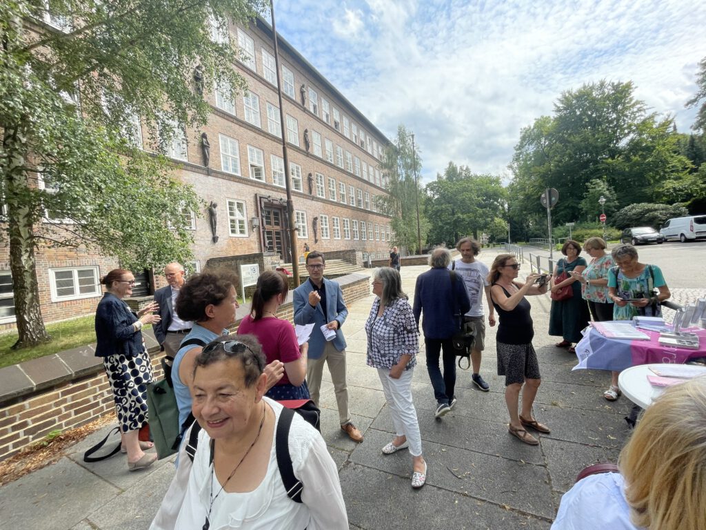 Die Feierlichkeit wurde von einer Vielzahl an Gästen besucht. In zahlreichen Redebeiträgen wurde viel über das Leben und Wirken Irmtraud Morgners in Chemnitz sowie im damaligen Ost- und Westdeutschland gesprochen. Wir bedanken uns an dieser Stelle bei den Redner*innen Andreas Gläser (Schulleiter Agricola-Gymnasium), Susanne Köhler und Jessica Bock (Landesfrauenrat Sachsen e.V.), Ilona Seifert (Lila Villa Chemnitz) und Prof. Ilse Nagelschmidt (Universität Leipzig). In einer kurzen Lesung von Pia Hamann (Gleichstellungsbeauftragte Stadt Chemnitz) wurde ein Ausschnitt aus Morgners Werk gelesen. Als musikalischen Abschluss hörten wir ein Musikstück an der Trompete.