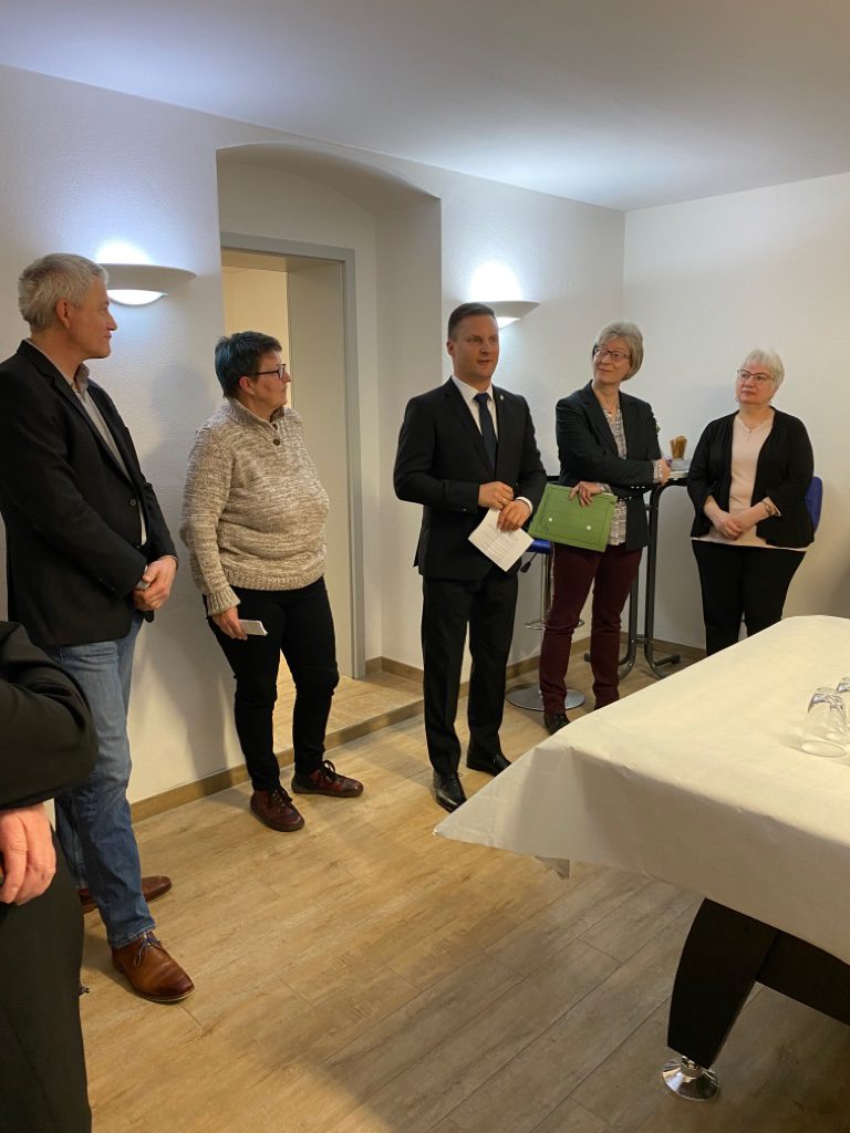 Bernd Herrmann, Hausherr und Geschäftsführer der Ingenieurgesellschaft sprach über den Umbau und lud nach der feierlichen Enthüllung der Gedenktafel noch zum Sektempfang und netten Gesprächen ein.