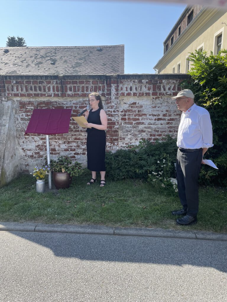 Im ehemaligen Geburtshaus Marie Simons lud die Gemeinde Doberschau zu einem großen Fest ein. Anlässlich Marie Simons 200. Geburtstages begrüßte der Bürgermeister der Gemeinde, Alexander Fischer, zahlreiche geladene Gäste zu einem Kaffeetrinken. Ein umfangreicher Vortrag von Jürgen Helfrich, Autor der jüngst erschienenen Biografie Marie Simons, wurde die Lebens- und Wirkungsgeschichte Marie Simons ausführlich vorgetragen. Im Anschluss wurde unsere frauenorte sachsen-Tafel feierlich eingeweiht. Das Projekt frauenorte sachsen stellte Friederike Berger, Mitglied im Fachbeirat frauenorte sachsen, vor. Thomas Klemp, Historiker beim Deutschen Roten Kreuz und Autor des Tafeltextes, betonte noch einmal die historische Bedeutung Marie Simons für den Berufszweig der Krankenpflege. Zum Abschluss wurde auf dem Alten Dorfplatz in Doberschau ein großes Denkmal zu Ehren Marie Simons eingeweiht. Alles in allem eine sehr gelungene Veranstaltung, die dazu beiträgt, die Verdienste dieser außergewöhnlichen Frauen nachhaltig zu erinnern.