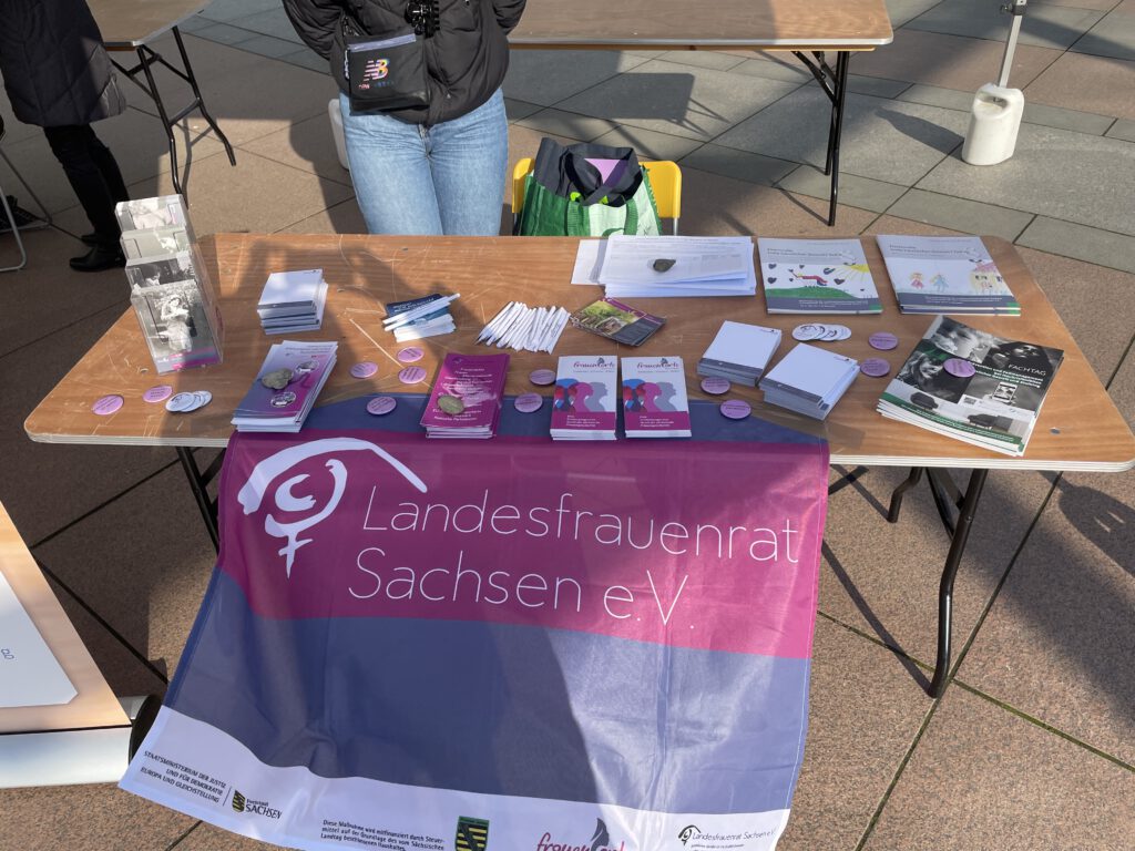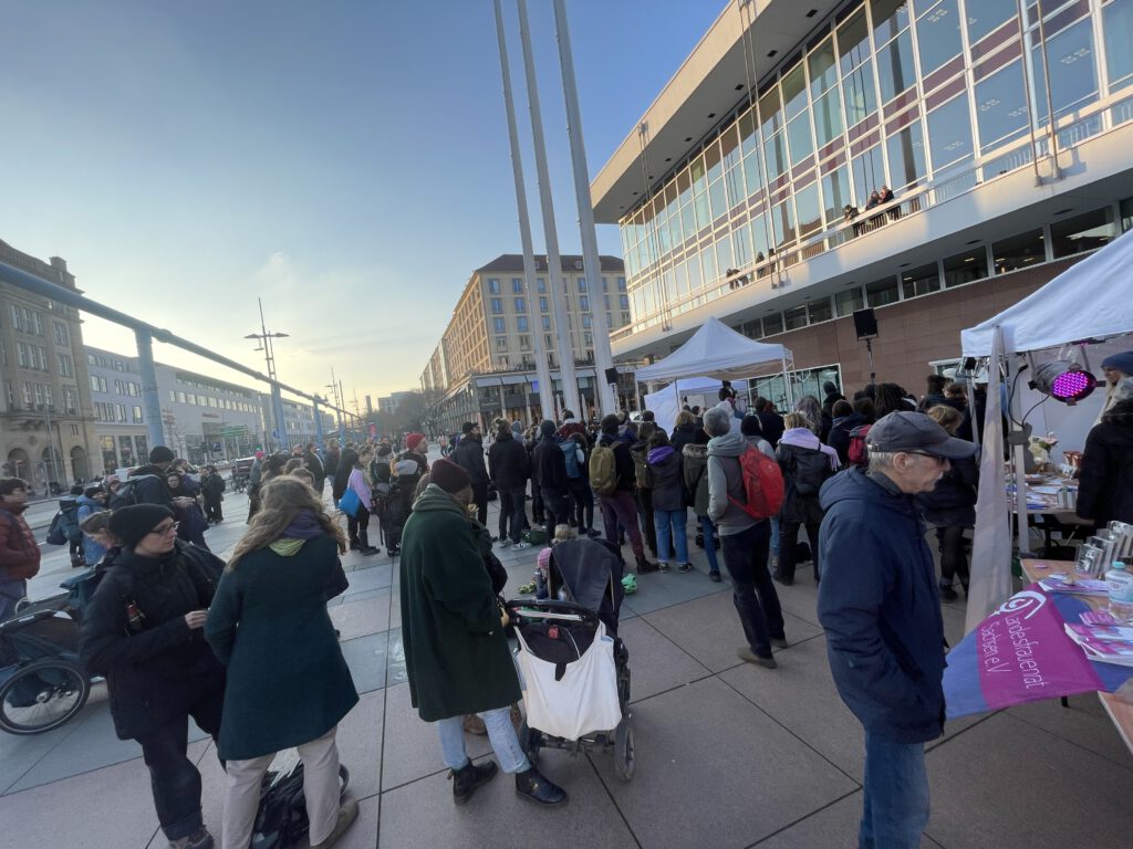 Zum Internationalen Frauentag fanden auf dem Vorplatz des Kulturpalastes Dresden FLINTA*-Konzerte unter dem Thema „Unüberhöbar – FLINTA*-Konzerte gegen Gewalt“ statt. Die Veranstaltung wurde von dem D.I.K. Gewaltschutzzentrum initiiert. Besucher*innen konnten sich an verschiedenen Infoständen vom Gewaltschutzzentrum, dem Frauen- und Mädchengesundheitszentrum MEDEA, dem sowieso Frauen für Frauen e.V. und dem LFR Sachsen über die Themen Gewaltschutz informieren und gleichzeitig den Konzerten von Kreis 01 (Hip Hop), Schwaggy Halleluja (Rap), Gypsy Wings (Blues, Jazz, World) und Granatéze (Garage Pop) lauschen. Vielen Dank an die Organisation an das Gewaltschutzzentrum Dresden für die tolle Organisation!