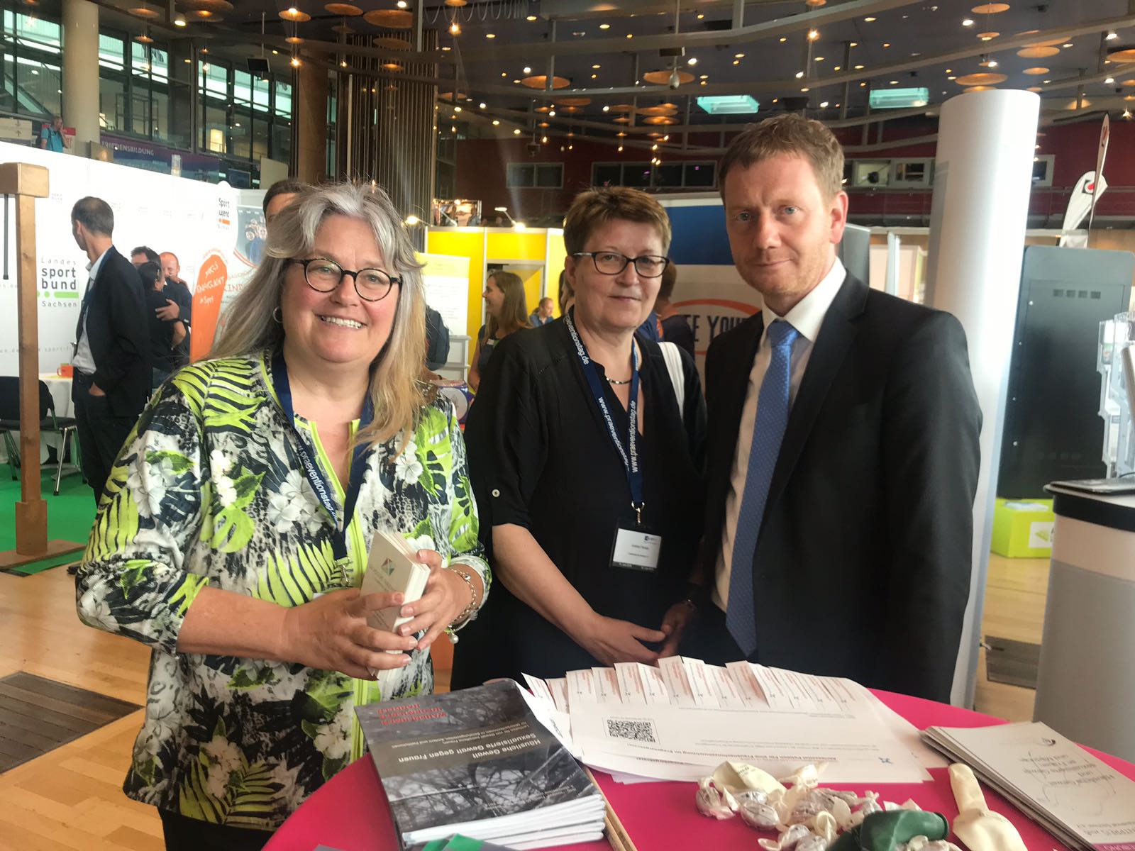 Foto: Susanne Köhler (DJB), Staatsministerin Katja Meier und Jessica Bock (Vorsitzende des Landesfrauenrat Sachsen e.V.) (v.l.n.r.)